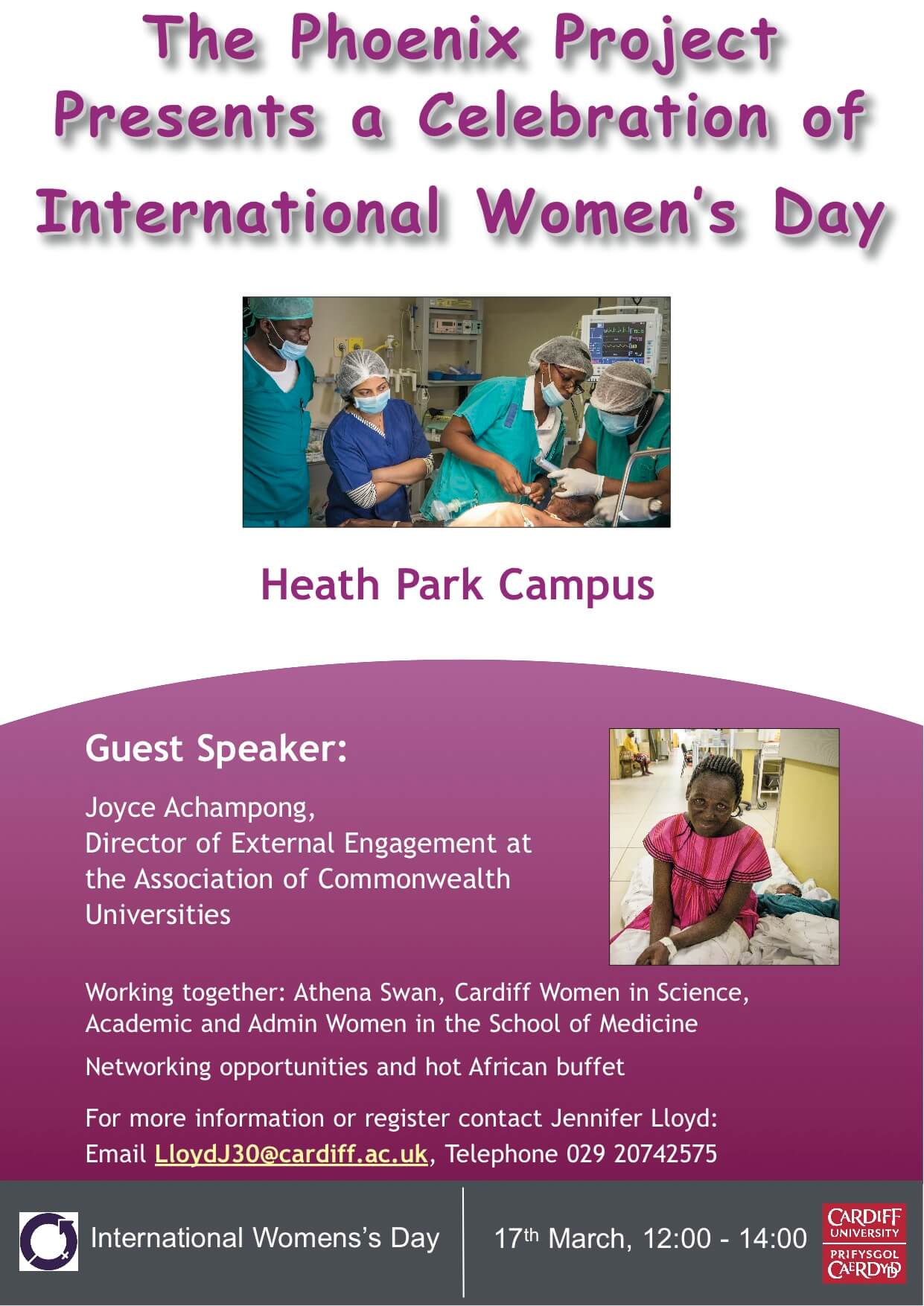 In a celebration of International Women’s Day, The Phoenix Project is hosting an event on 17th March, with lunch starting at noon and presentations at 12.30pm in Room 3.19 Ty Dewi Sant Building, Heath Park. The keynote speaker is Joyce Achampong, Director of External Engagement at the Association of Commonwealth Universities.